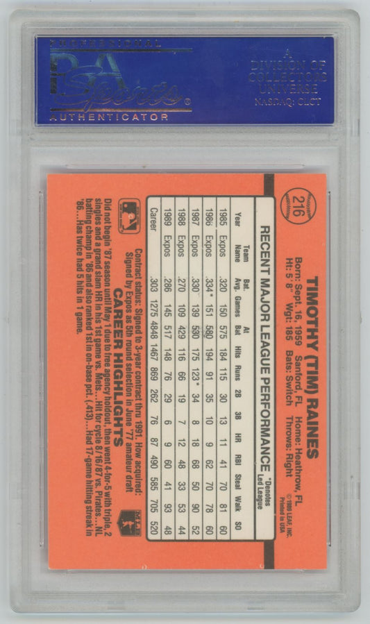 1990 Donruss Tim Raines #216 Auto - PSA/DNA