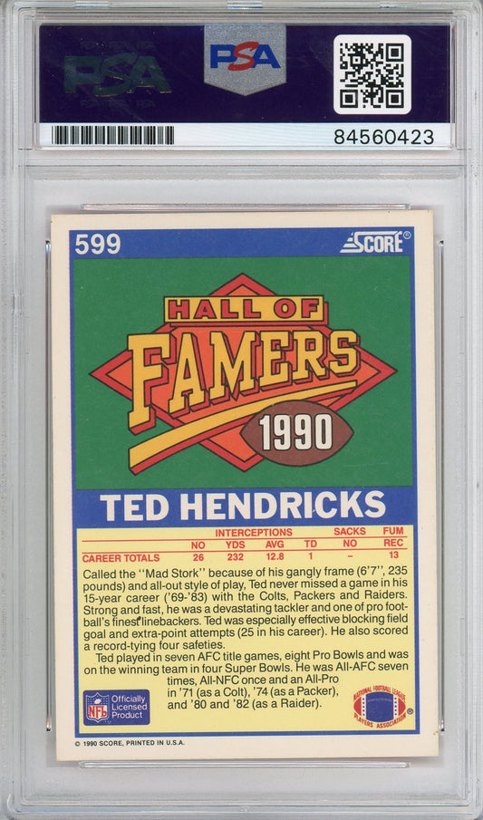 1990 SCORE TED HENDRICKS #599 AUTO PSA/DNA AUTO GRADE 10