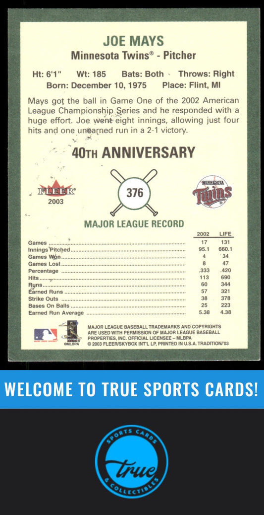 2003 Fleer Tradition #376 Joe Mays AUTO