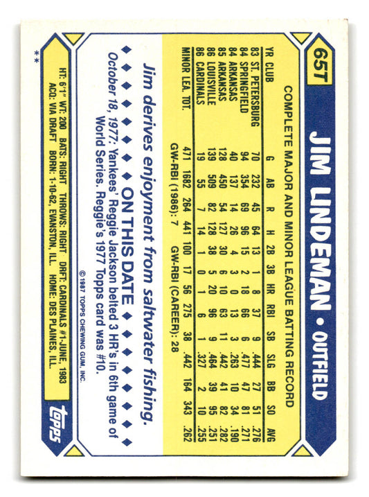 1987 Topps Traded #65T Jim Lindeman Autograph