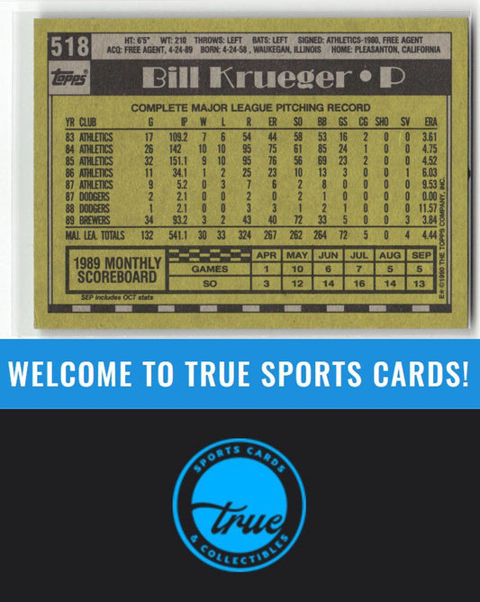 1990 Topps #518 Bill Krueger Auto