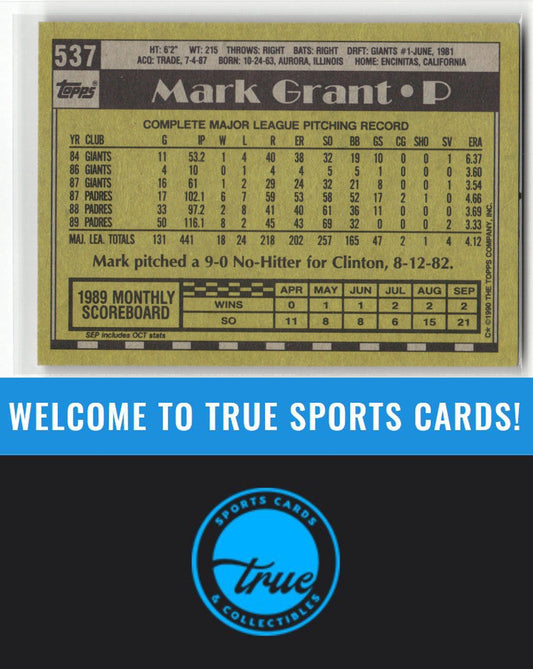 1990 Topps #537 Mark Grant Auto