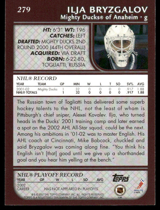 2002-03 Topps #279 Ilja Bryzgalov AUTOGRAPH