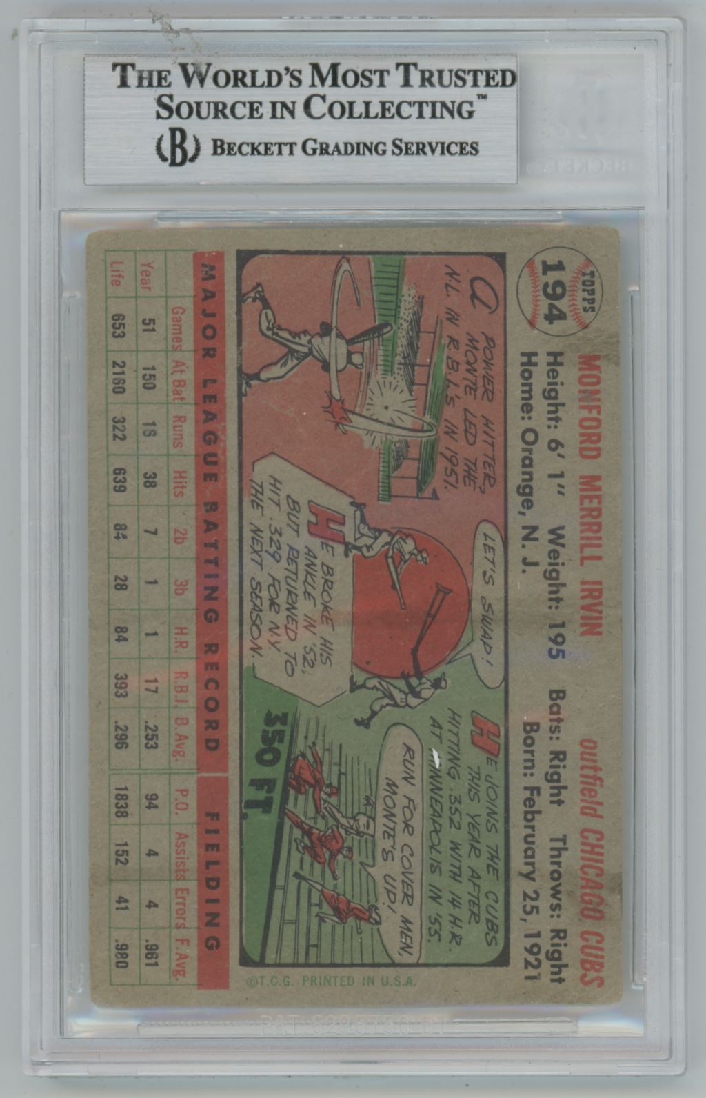 1956 Topps Monte Irvin Auto - Beckett Authentic
