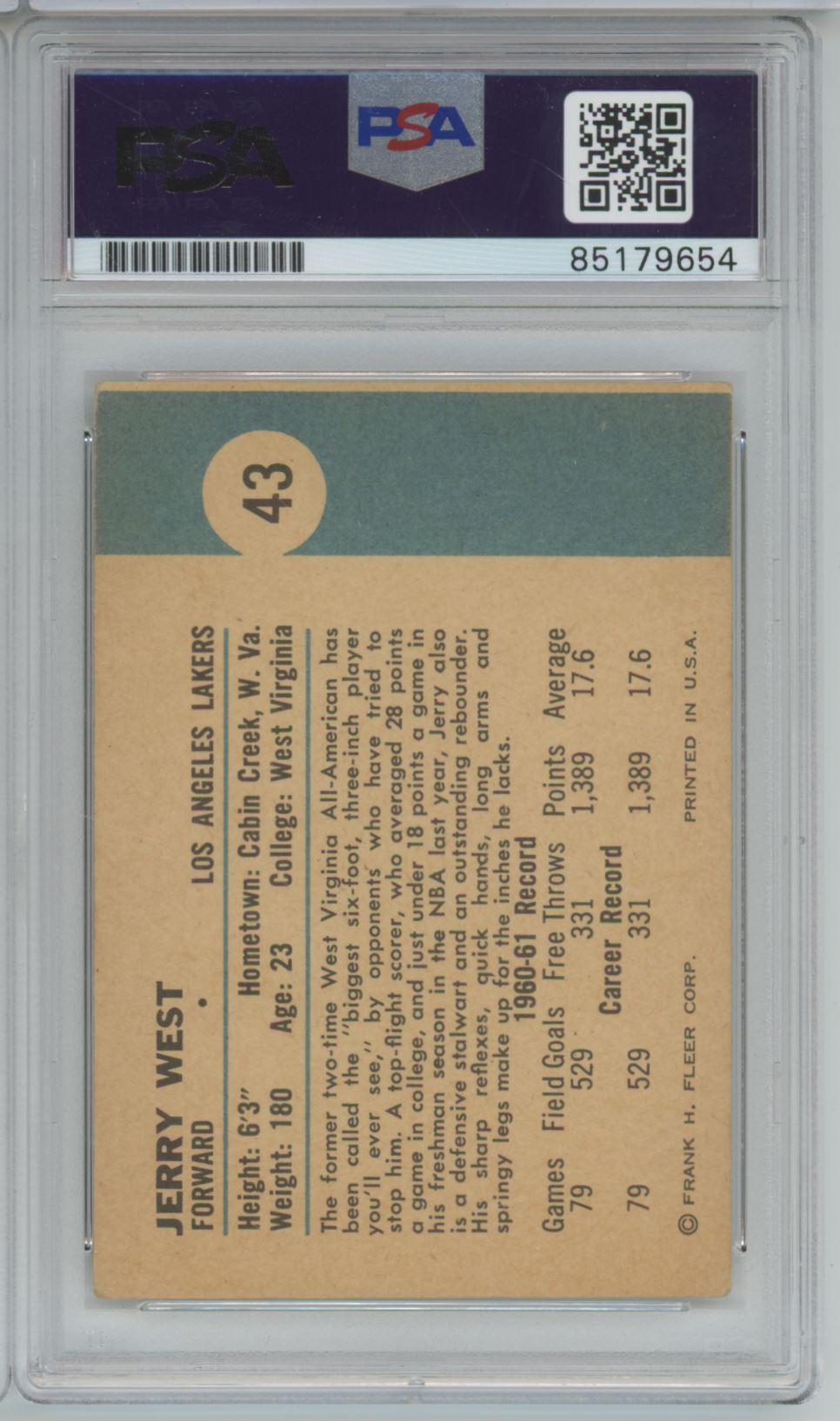 1961 Fleer #43 Jerry West Auto - PSA/DNA Authentic