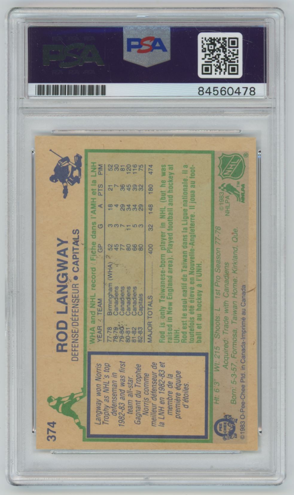 1983 O-Pee-Chee Rod Langway #374 AUTO - PSA/DNA Authentic