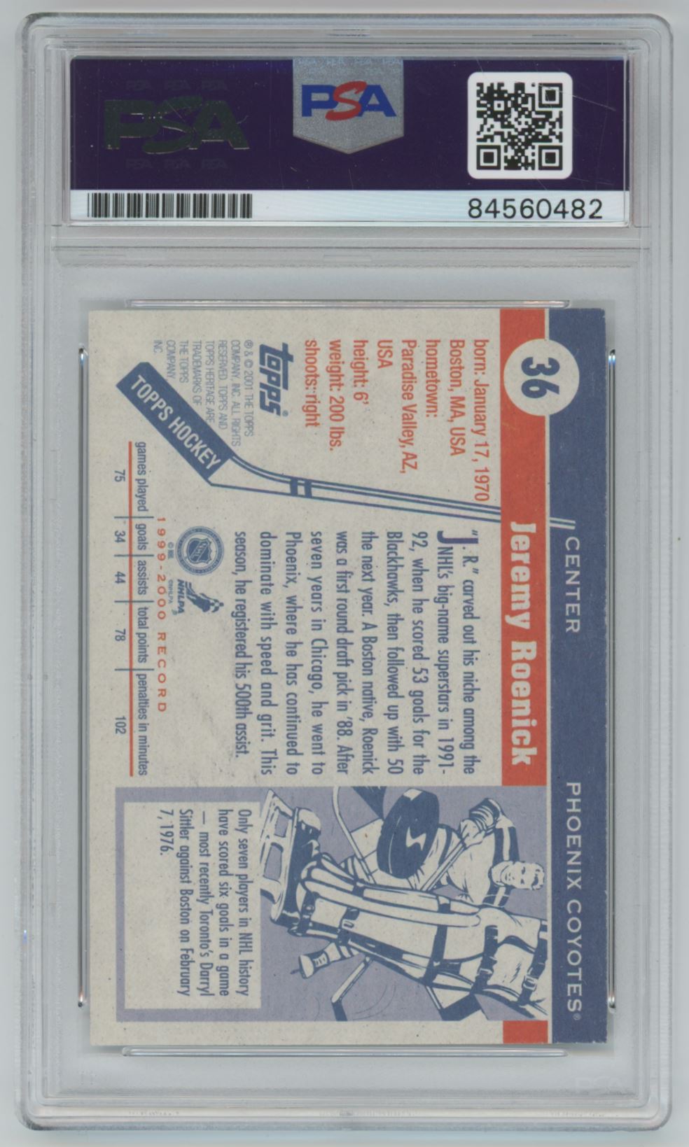 2001 Topps Heritage Jeremy Roenick #36 Auto - PSA/DNA Authentic