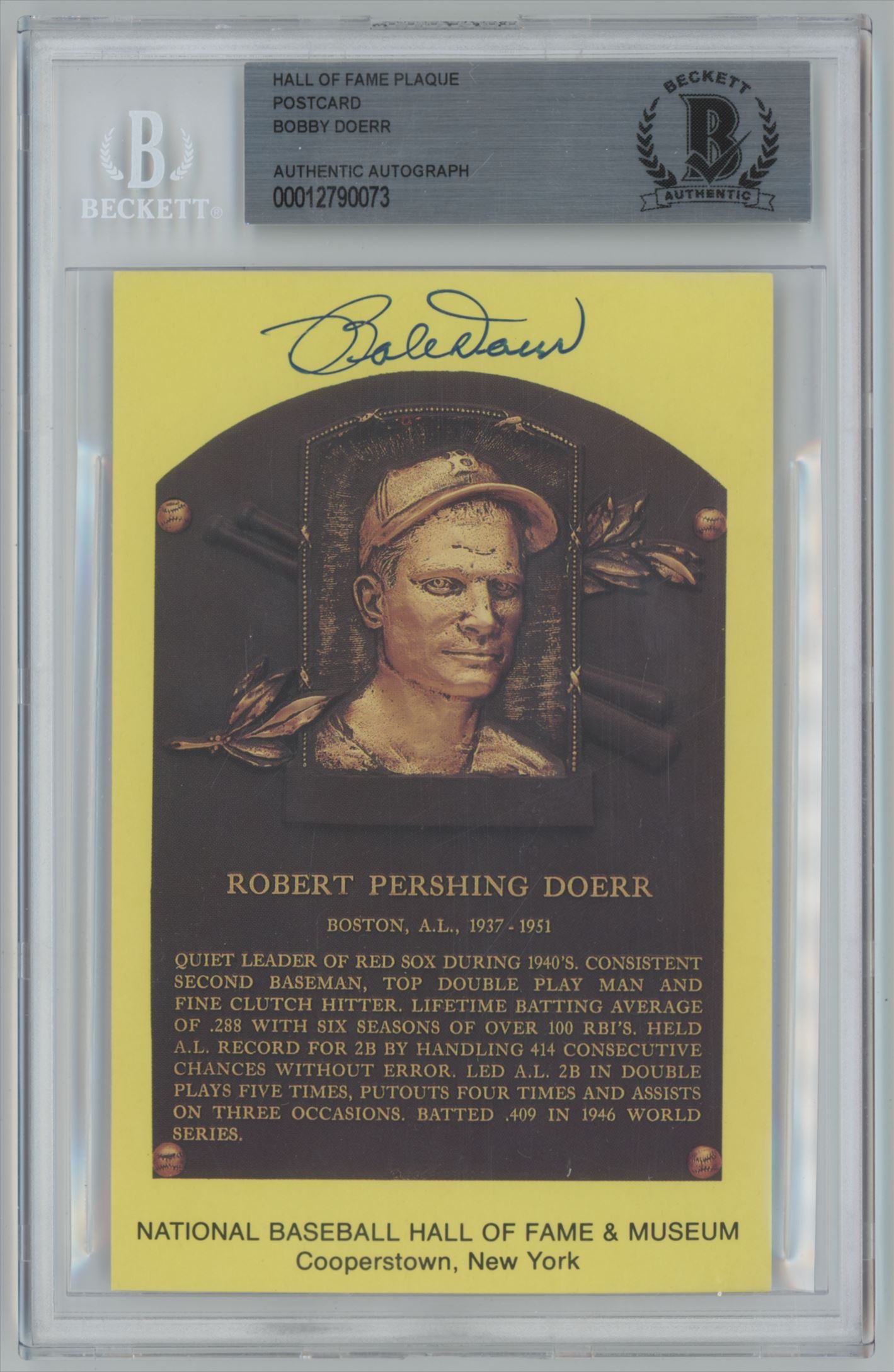 Hall of Fame Plaque Postcard Bobby Doerr Auto - Beckett Authentic